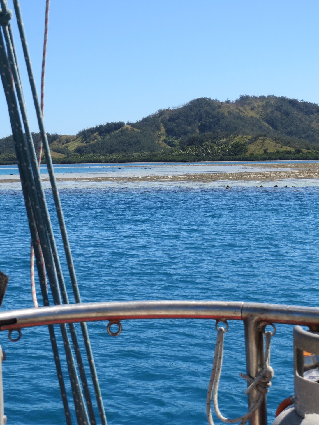 Blick nach hinten nach dem der Anker liegt. Wir sind umzingelt von Riffen..