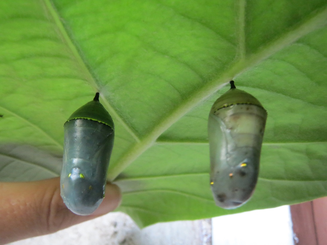 Toko und Wani zeigen uns den Garten und auch diese wunderschönen Caterpillar = Schmetterlingsraupen. Sie hängen unter den Blättern des Frangipanibaumes, deren Saft eine starke Medizin ist. Sie wird zum Heilen von Wunden benutzt..