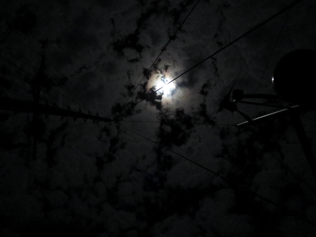 Eine Illusion: Das Licht des Vollmondes in den Wolken gibt uns das Gefuehl es waere Winter. Nur ist es wunderschoen warm dabei…