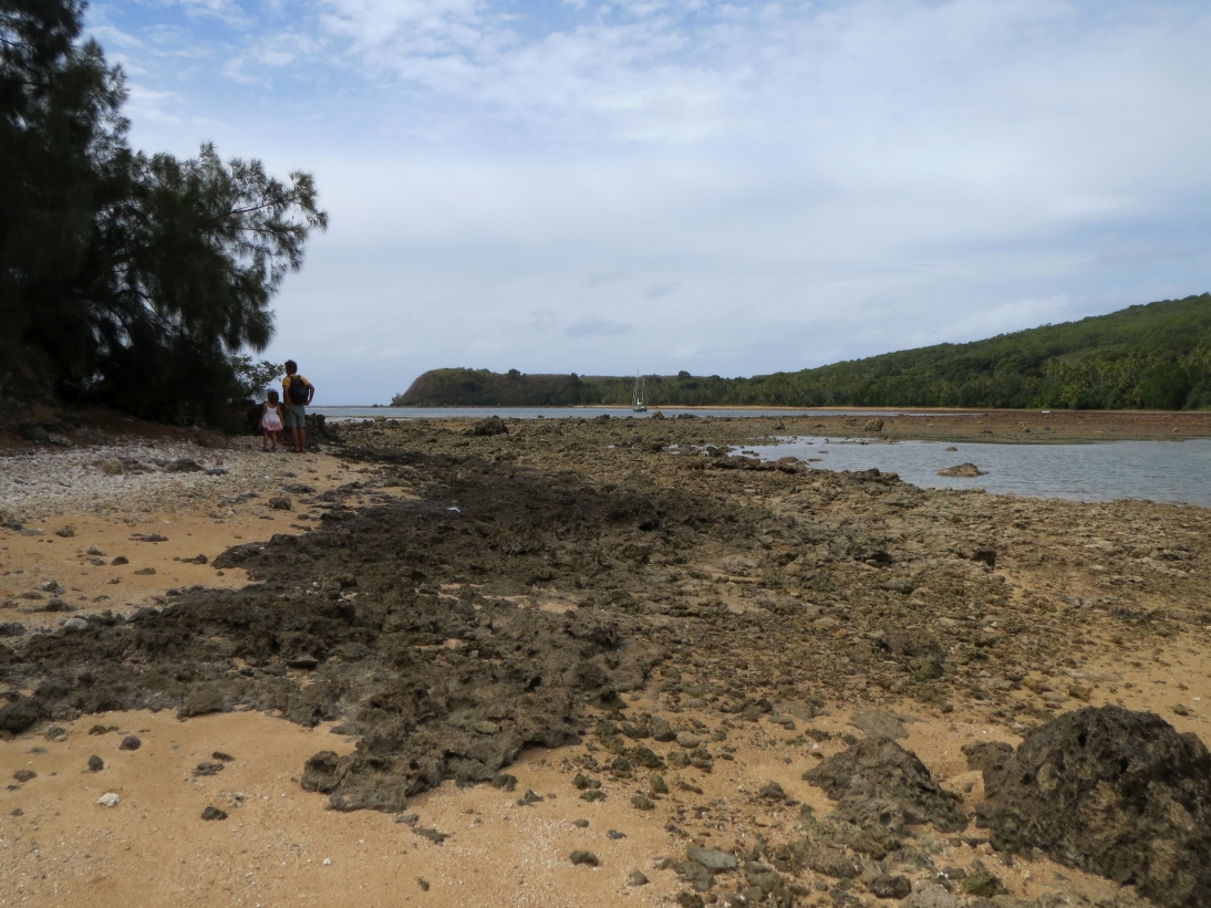 Bei low tide kommt sooo viel Riff zum Vorschein! Wir koennen bis zur vorgelagerten kleinen Insel laufen..