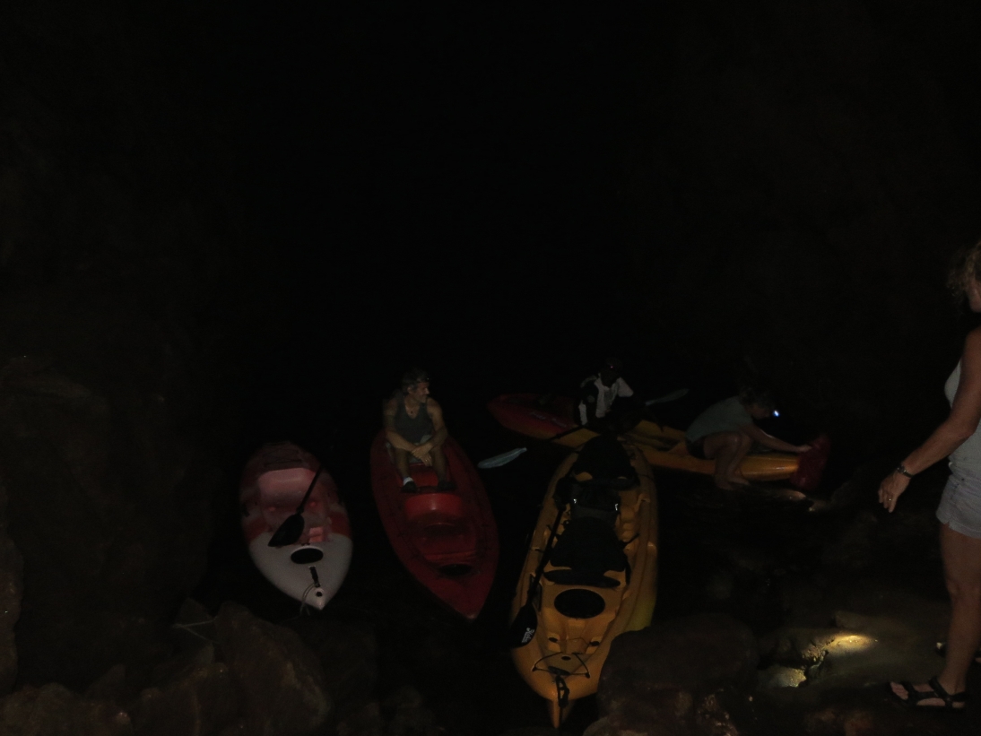 Wir steigen aus und erkunden die Hoehle zu Fuss. Hier ein Bild im Dunkeln…