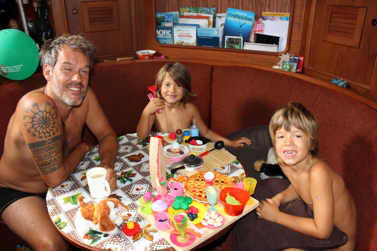 Erster Morgen in Australien: Das Frühstück ist bereit, der Kapitän noch nicht so richtig..