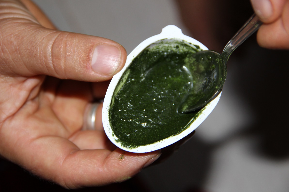 Unser neues Malariamittel, dieses Mal in Krautform gemischt mit Honig im Ueberraschungsei..