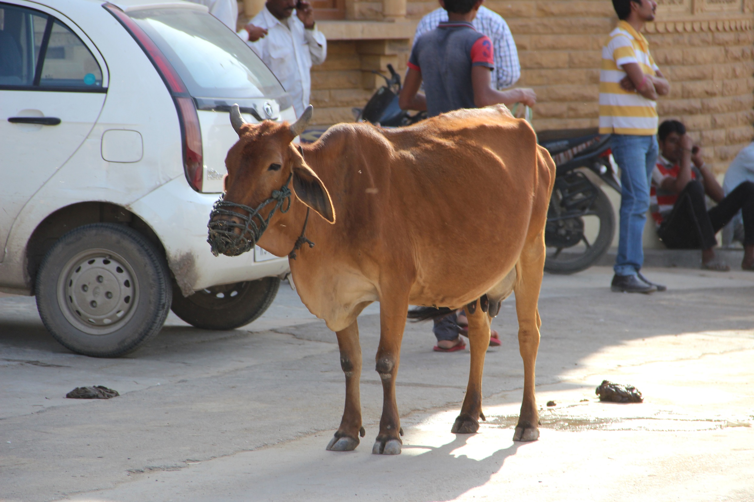 Heilige Kuh mit Maulkorb. Vielleicht ist sie bissig??