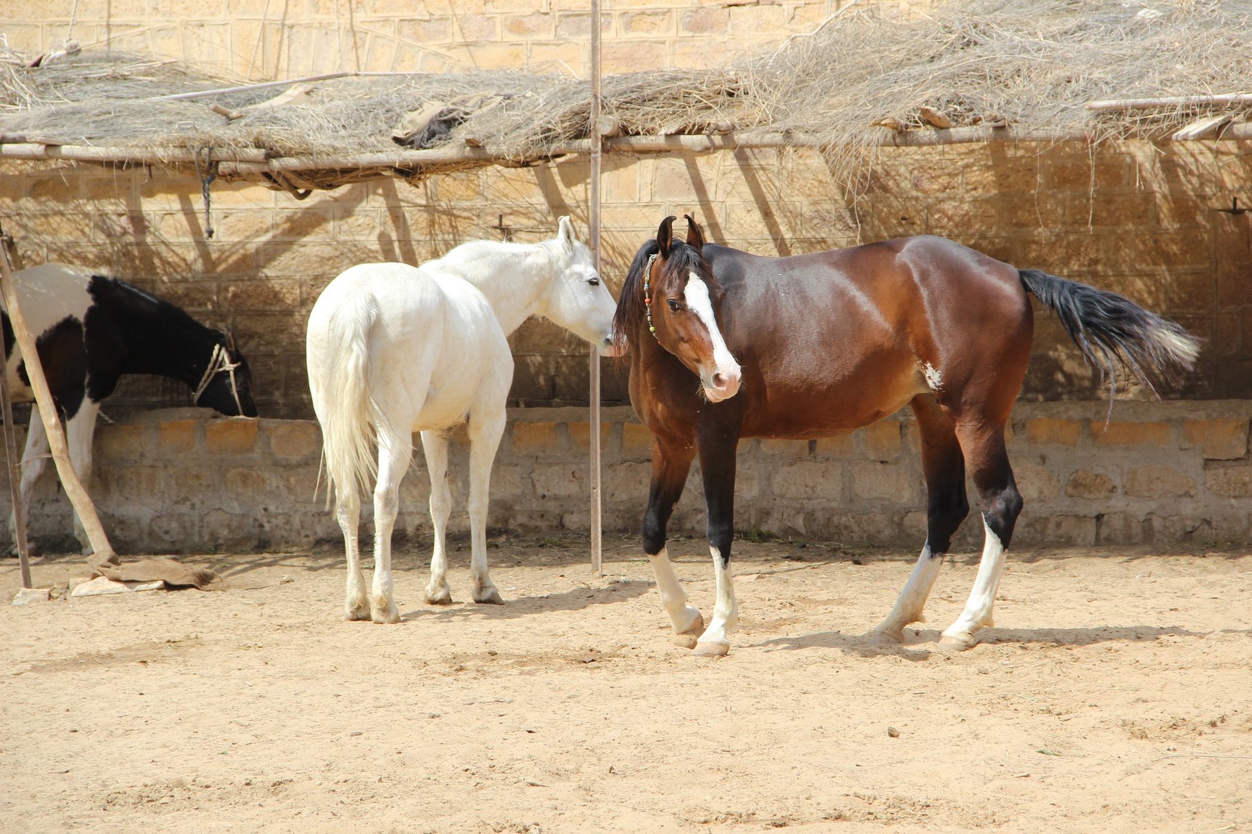 Die Pferde des Maharadscha laufen im Innenhof frei herum..
