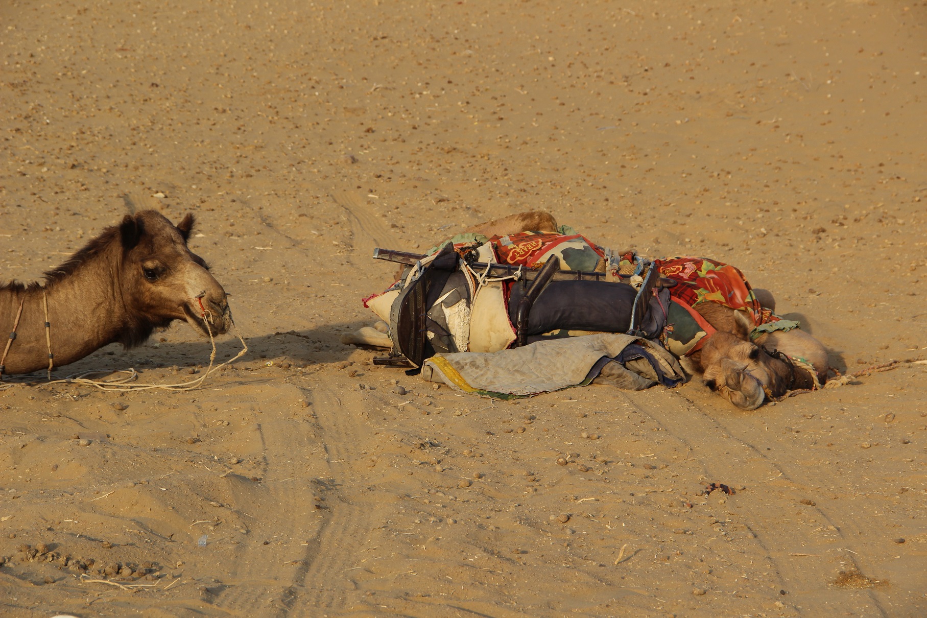 Am Lager angekommen sind auch die Dromedare gluecklich..