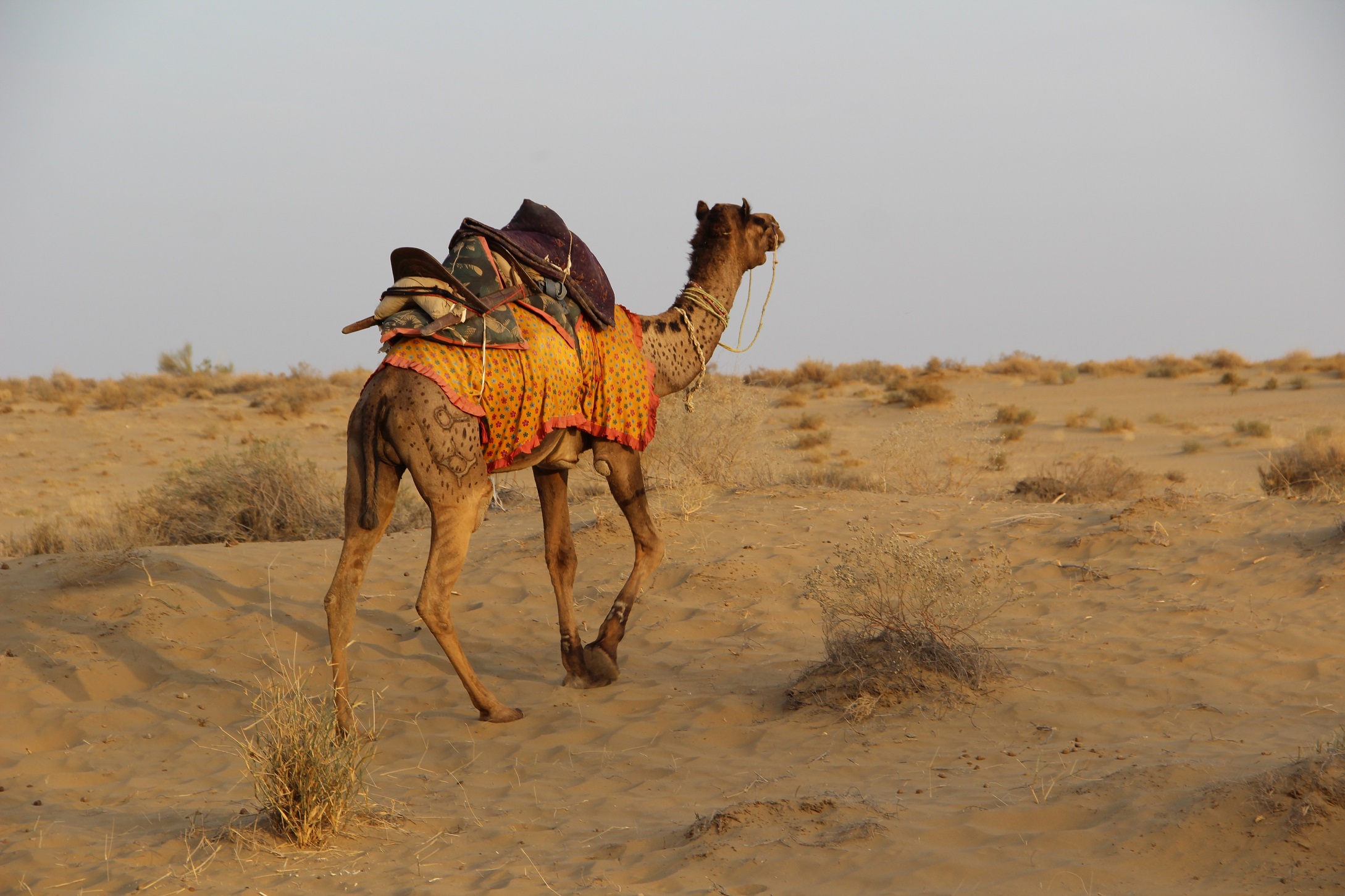 “Unsere” beiden Dromedare bekommen die Zuegel um den Hals gelegt und dann laufen sie alleine nach Hause…