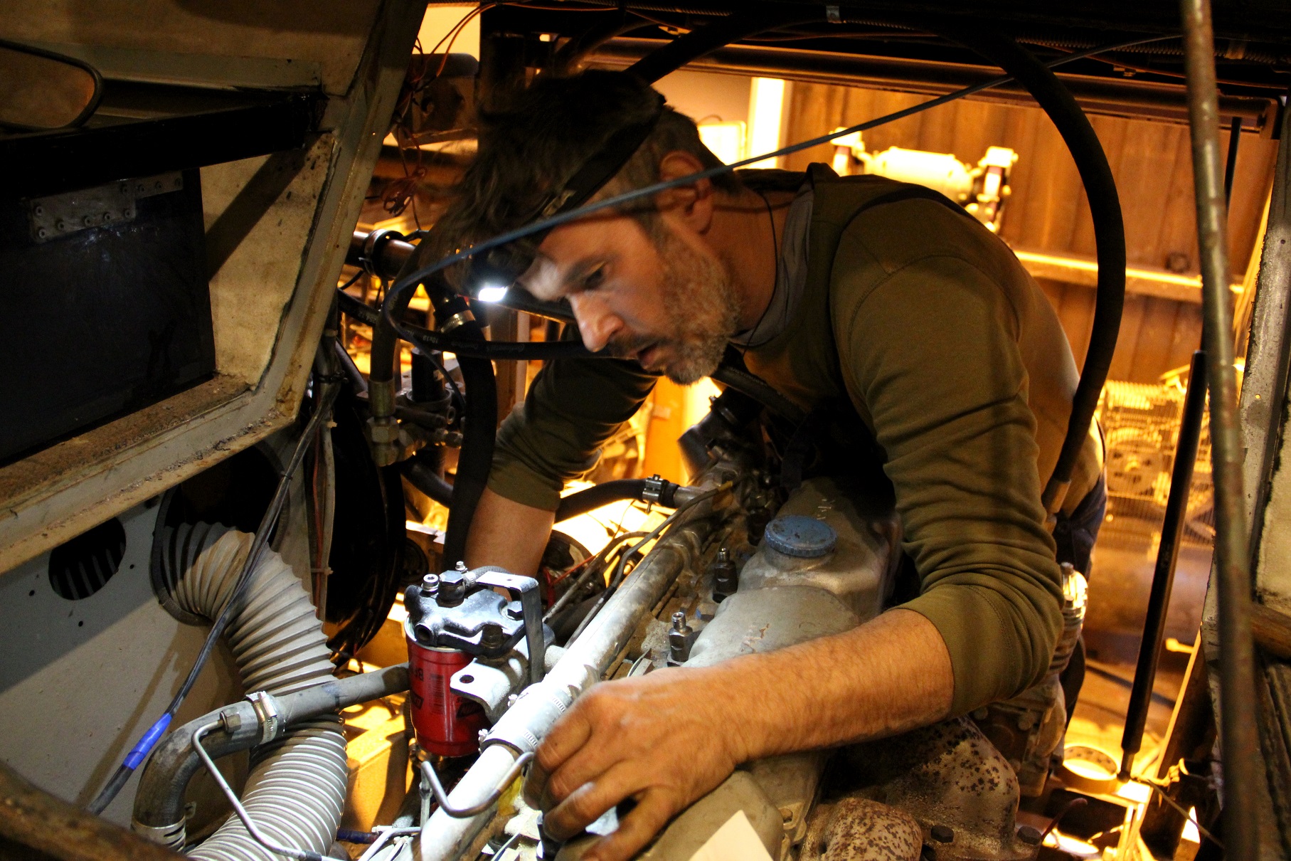 Der Kapiaten beim Wiedereinbau der Einspritzduesen. Hoechste Konzentration! Wie zum Henker passen die nochmal rein??