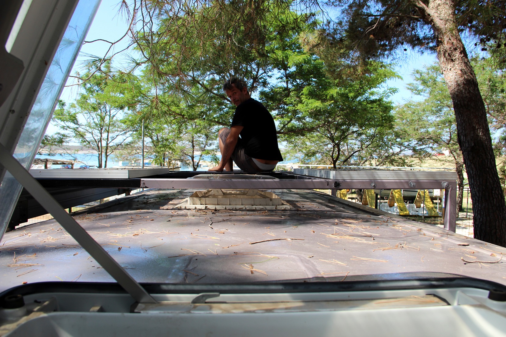 Bevor wir weiter ziehen wird das Dach nochmal gecheckt und fehlende Schrauben reingedreht. Beim Abschied fragt uns Matti, ob das SP in unserem Nummernschild fuer Super Perle steht. Ist uns gar nicht aufgefallen, aber na klar! Die Super Perle, ein neuer Name ist geboren.. und dann sind wir auch schon unterwegs zu einem Platz, der kein Autocamp ist. Die Kueste links runter…