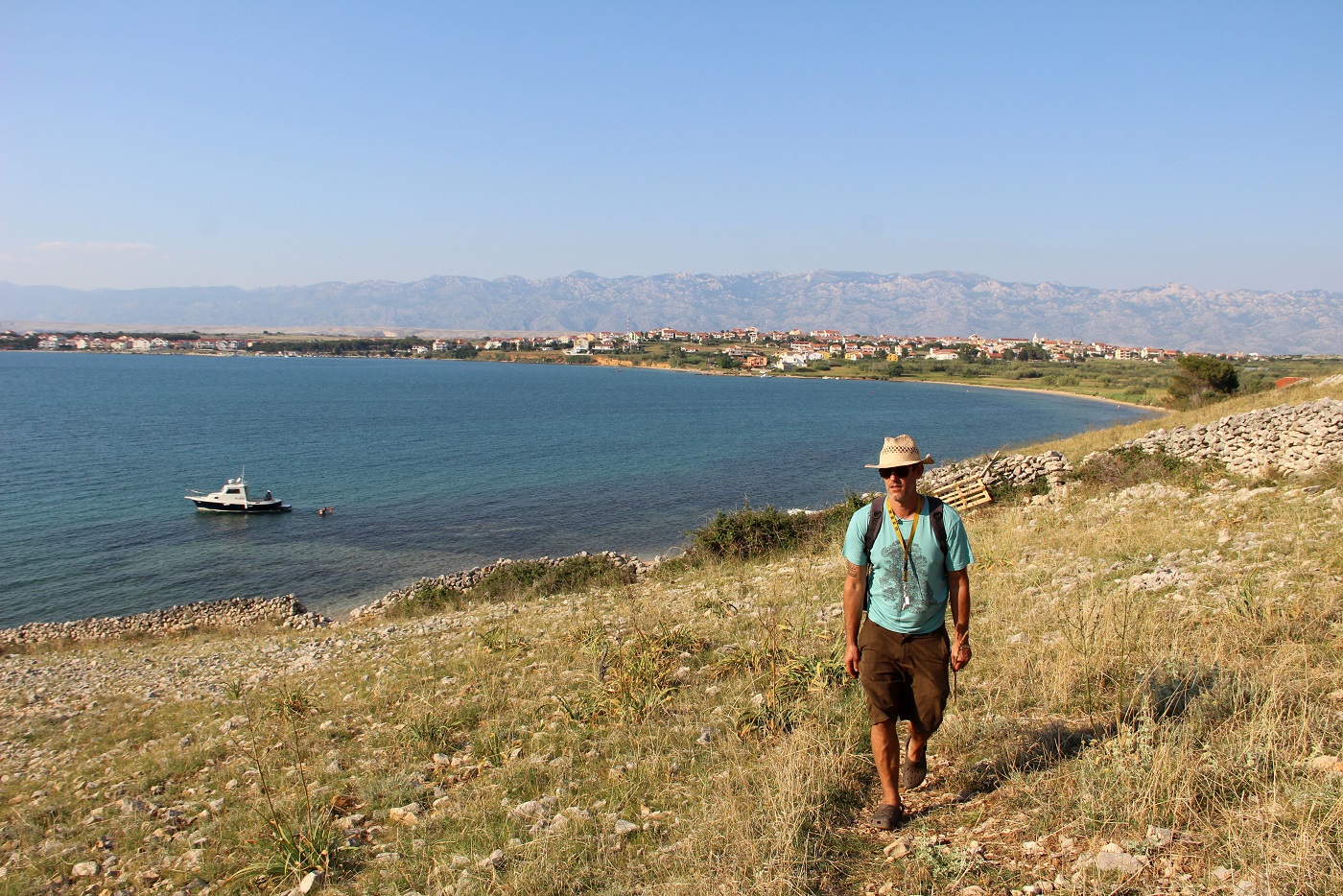 Blick runter auf Povljana auf Pag mit dem Festland im Hintergrund