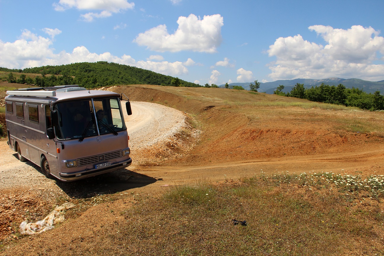 Naechster Picknickstopp links ab, ganz rauf auf den Berg.. Machts die Perle??
