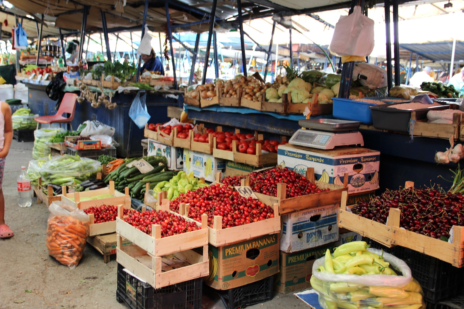 Noch schnell ueber den Markt, frisches Gemuese und Ajvar kaufen..