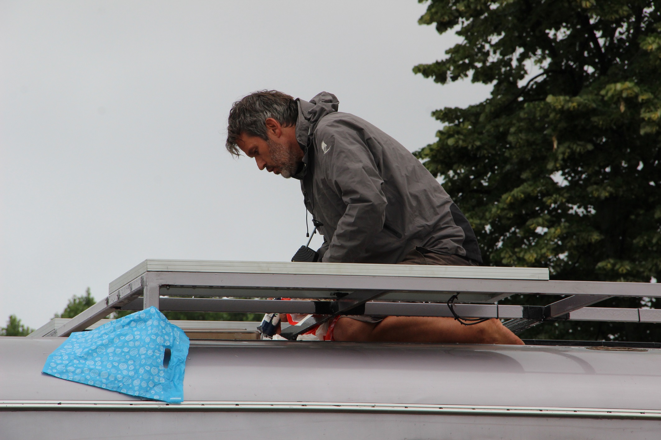 Der Regen laesst nach und schwupps ist der Kapitaen auf dem Dach und dichtet ab. Und na klar macht er seine Sache perfekt. Es ist und bleibt dicht!