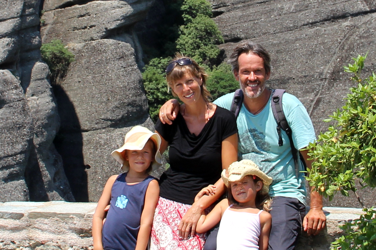 Wir klettern noch bis auf die Dachterasse und werden genoetigt ein Familienfoto zu machen, das ist hier wohl so ueblich und na klar machen wir da mit 🙂