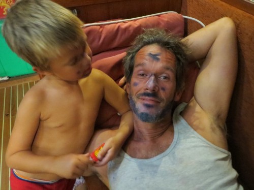 So, jetzt sind wir doch glatt in Neuseeland angekommen. Rolf und ich haben die Molli mit ordentlich Schwung durch die eher berüchtigte Passage gesteuert und hatten dazu noch ohne Ende Spaß dabei. Überhaupt war es großartig mit Rolf! Das erste Mal war ein echter Segler an Bord, dem ich ohne mit der Wimper zu zucken die volle Verantwortung fürs Schiff übergeben konnte. Unsere vorherigen Mitsegler waren doch eher beseelte Anfänger, denen Nikola und ich immer noch über die Schulter gucken mussten. Da Rolf sogar ein sehr ähnliches Schiff wie die Molli segelt war es viel mehr Inspiration als erklären von Grundsätzlichkeiten. Rolf alter Seebär, kannst gerne antreten, wenn wir in einem halben Jahr wieder Richtung norden schippern. Da wir Rolf ja um ein paar Tage Südsee gebracht haben, weil wir recht schnell aus Tonga los wollten, hat er uns schon gestern verlassen um noch mal in die Sonne zu fliegen. Und weil er son bißchen verrückt ist und am liebsten südlich des 40ten Breitengrades segelt, fliegt er zu guter Letzt noch mal ans Südkap von Neuseeland. Das liegt nämlich auf 46 Grad Süd und da kann er noch mal schön auf stürmische See blicken und von seiner nächsten großen Reise träumen. Rolf, viel Spaß dabei und noch mal danke das du den Törn mit mir gesegelt bist. War sau geil!!! Nicht so geil sind hingegen die Temperaturen hier. Schon vor der Ankunft in Neuseeland hab ich unseren Ofen zerlegt und gesäubert, damit wir es uns hier schön mollig machen können. Das hat auch prima geklappt und wir schlagen uns so ca. alle 7 min. heftigst auf die Schenkel das wir ihn noch haben. Als wir vor nem Jahr in der Karibik angekommen sind, hätten wir ihn nämlich um ein Haar raus gerissen weil wir dachten ab da im ewigen Sommer zu segeln. Was für ein Glück, dass er noch da ist und die Hütte heizt als wäre nichts gewesen. Null nachtragend der Gute. Gefühlt geht es hier morgens um 6 stramm auf den Gefrierpunkt zu und er läuft rund um die Uhr. Hat aber auch nen sehr pragmatischen Grund. Wir verbrennen gerade den Diesel aus unserem alten verdreckten Tank und wenn er leer ist werde ich ihn reinigen. Bis dahin machen wir Sauna mit allen Fenstern auf. Gibt schlimmeres. Ansonsten ist hier auch wieder der übliche Wahnsinn eingekehrt. Die Kinder verwüsten die Molli im Handumdrehen und na klar, meine geliebte Frau ist wieder hier. Wir haben im übrigen feierlich beschlossen, dass wir ab jetzt alles zusammen segeln. Es war zwar einfacher für uns alle das sie die letzte Passage geflogen ist, aber schön war das nicht, ich hab sie sehr vermisst. Von daher kommt es nicht mehr in die Tüte, dass wir uns auf unserer Reise noch mal trennen. Basta aus Ende.