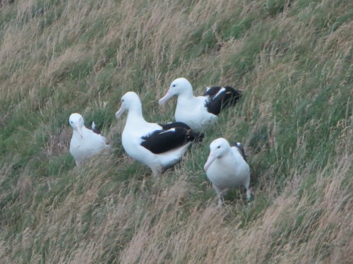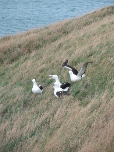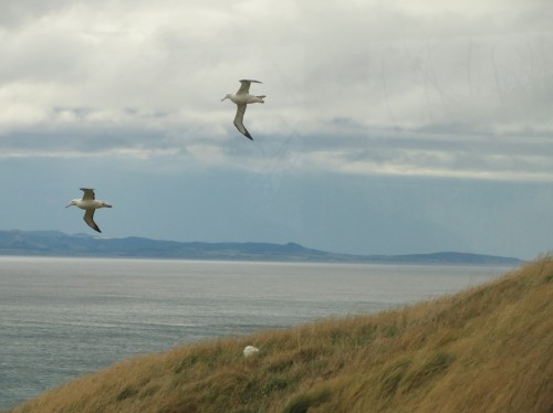 The Royal Albatross! Hier brüten die Vögel auf dem Festland. Das ist einmalig auf unserer Erde! Sie kommen als Pärchen, brüten monatelang ihr eines Ei (wechseln sich dabei brav ab), dann wärmen und füttern sie es weitere Monate, um sich dann mal für ein zwei Tage zu verabschieden. Der kleine Albatross wird immer größer und wenn er dann nach nem knappen Jahr so weit ist, dass er fliegen kann, dann hebt er beim ERSTEN Versuch ab und landet erst nach 5-6 JAHREN wieder hier an Land mit einem Partner und dann gehts von vorne los. In der zwischenzeit ist er als Seevogel auf den Meeren unterwegs. Krass oder?