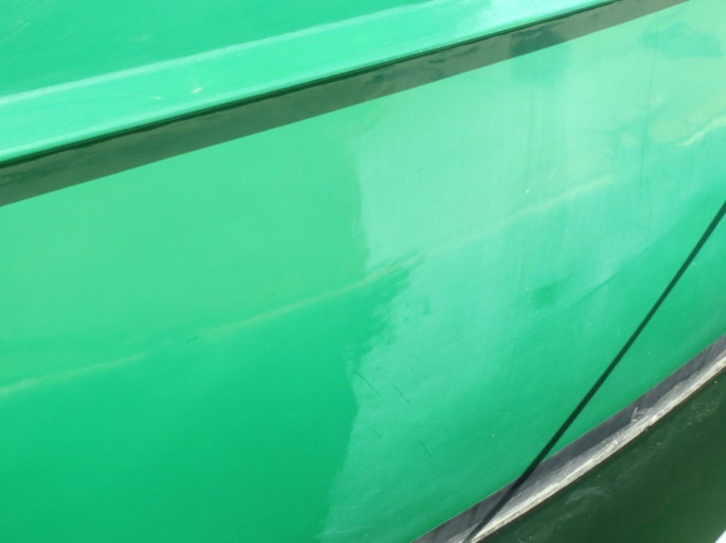 Der neue Anstrich Epoxyprimer (grün) und da drauf die erste Schicht Decksfarbe)
