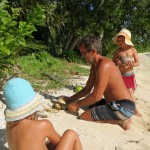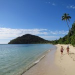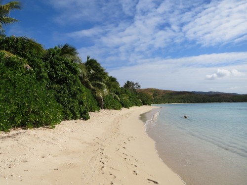 Zur Zeit liegen wir in der Somosomo Bay, von der wir uns eigentlich nur einen ruhigen Ankerplatz auf dem Weg in die Blue Lagoon erhofft haben, aber siehe da wir liegen mal wieder allein vor einem atemberaubenden 2 km Sandstrand. Der Anker ist auf 8 Metern eingegraben, schön mittig in der Bucht platziert und rundherum ca 100 Meter Platz bis zu den Riffen. Passt also genau!