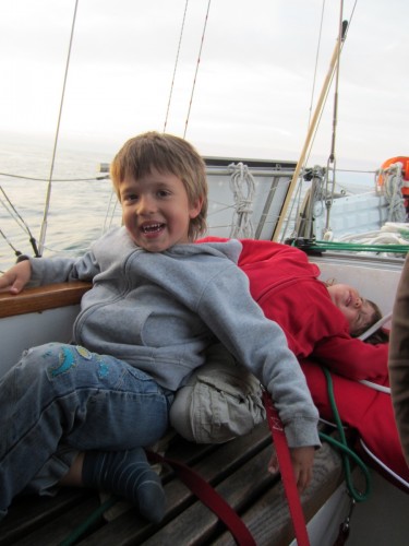 So und auf unserer letzten Überfahrt nach Brixham hat der Kapitän doch tatsächlich seinen ersten FISCH geangelt!! Ich glaubs nicht! Heute wird er als unser Anglerheld gefeiert! Obwohl Jaron es erstmal gar nicht schön fand: “Ich bin traurig. Den näxten Fisch den ich angel tu ich in eine Vase mit Deckel und betrachte ihn. Ich mag lieber Fische zum anschauen…” Lina dagegen fand den Fisch ohne Kopf gar nicht schlimm. Sie hat ihn auch tapfer angefasst, nur essen will sie ihn lieber doch nicht 🙂