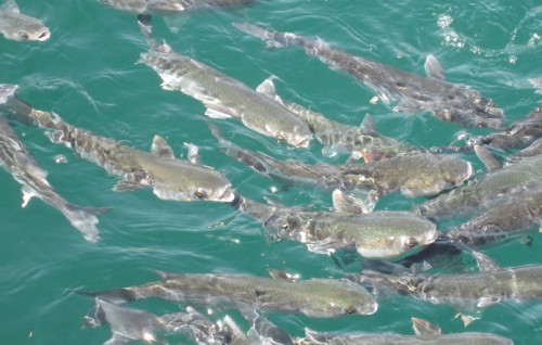 ..und jeden Abend schwimmen hier Fische durch die Häfen und haben ihr Maul auf und es sieht aus, als würden sie Luft schneppen. Voll komisch..
