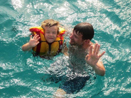 Jaron geht von der Molli mit Bernd im Meer schwimmen!