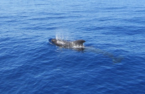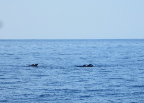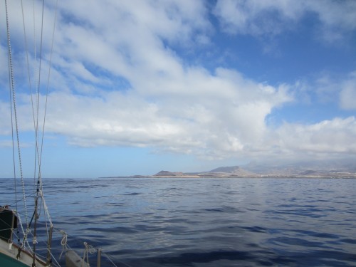Die Überfahrt nach La Gomera hat mir mal wieder etwas Seekrankheit beschert. Wir starteten die 110 Seemeilen abends mit 18 Knoten und Welle von vorn. Bäh das mag ich einfach nicht. Marcus hat die Nachtwache übernommen und am näxten Morgen, schön ausgeschlafen, war bei mir wieder alles gut. Wir haben Tenerife rechts liegen gelassen und durften ein paar Wale oder Delfine sehen (wir wissens immer noch nicht). Jedenfalls waren es sehr große Tiere und sie bewegten sich gaaanz langsam, zu mindestens im Verhältnis zu den Delfinen, die wir bis jetzt gesehen haben. Sie haben sich sowieso ganz anders verhalten. Sie blieben in Gruppen auf einer Stelle und man konnte ihre Finnen im Wasser stehen sehen. Oh sooooo schöne Tiere!!!