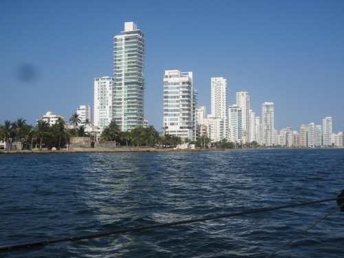 Wie zu erwarten war, sind wir in Cartagena angekommen und waren erschlagen von der Skyline und der größe der Stadt. Noch dazu kam, dass alle Marinas voll waren. Zum Glück haben wir noch eine Lücke in der Manzanillo Marina gefunden, aber erst nachdem wir 6 mal hin und her motort sind. Hier weht kein Lüftchen, wir sind im Industriegebiet gelandet, aber uns gefällts schon wieder! Morgen wollen wir mal in die Altstadt und übermorgen kommt schon meine Freundin Frauke angeflogen. Freude riesig! Und am 17. machen wir uns auf ins Hinterland. Wir lassen unsere geliebte Supermolli für 9 Tage allein und besuchen unseren Freund Kuki an der Pazifikküste. Kuki in Nuqui – hihi. Ob ich bis dahin überhaupt noch schlafen kann???? …so long..