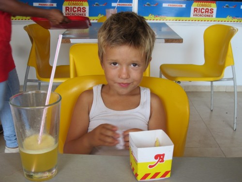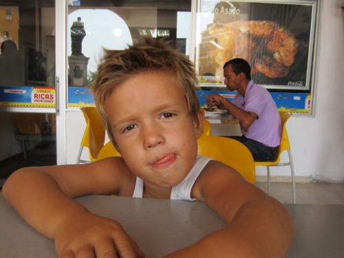 Im Chicken-Fast-Food laden: “Mama warum essen die Anderen Hühner? (Jaron ist strikter Vegetarier) Das versteh ich nicht. Wo kommen denn all die Hühner her? Ich mag sie lieber wenn sie rumlaufen.” Punkt…