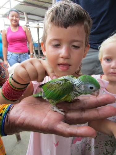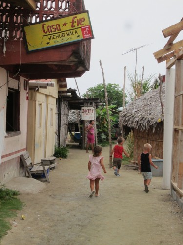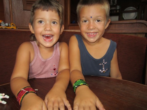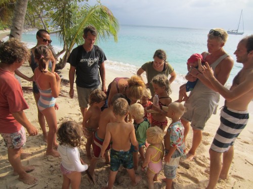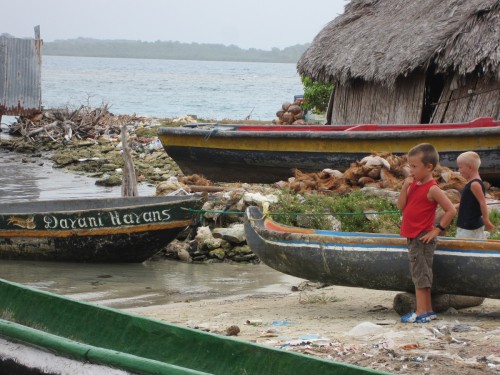 Nach einer Schoppingtour auf der Nebeninsel von Porvenier sind wir gestern nach Cayos Holandes gesegelt. Und wir waren zum ersten Mal schneller als die Felice. Das haben wir natürlich ordentlich abgefeiert 🙂 Halbwindkurs zwischen den kleinen Palmeninseln ohne Welle, dass mag unsere Molli gern und wir auch! Die Schoppingtour ist dagegen etwas mager ausgefallen. Kein Gemüse, außer Bananen kein Obst und auch sonst nur Milchpulver, Bier und Klopapier. Hm mal sehen wie weit wir damit kommen.. Dafür haben wir uns von den Kunas den typischen Armschmuck umbändzeln lassen.. Gestern am Strand gabs Familientreffen mit vielen Kindern aus der Schweiz, Frankreich na und wir Deutsche und Norweger. Jaron hat sich ein bisschen in das Schweizer Mädel verliebt… Hui.. Die Schweizer kamen mit der Idee um die Ecke, einen Wettkampf zu machen, wer am meisten Plastikmüll am Strand finden kann. Da waren wir natürlich begeistert. Es ist schon erschreckend, wie viel Plastikmüll auf diesen wunderschönen Inseln rumfliegt. Die Indianer haben nicht so wirklich ein Umweltbewustsein und fairerweise muss man auch sagen, dass wohl der meiste Müll angeschwemmt wird, oder von Seglern hier gelassen wird. Wir beschäftigen uns viel mit Müll, da wir in Zukunft im Pazifik nur noch Inseln ohne Müllabfuhr anlaufen werden. Wir haben uns entschieden unseren Müll immer mitzunehmen und auf den großeren Inseln zu entsorgen, wo er zumindestens verbrannt wird. Bis jetzt war das noch ganz einfach, aber ich glaube im Pazifik wird es etwas schwerer, weil die Distanzen so viel größer sind. Wir nehmen auch nur Plastik mit. Papier, Glas, Essensreste und Dosen schmeissen wir über Bord (natürlich nicht am Ankerplatz, aber auf hoher See schon). Na jedenfalls hat die Kindergruppe eindeutig gewonnen.. Später sind wir noch alle einmal um die Insel rum gelaufen und haben – ich weiß nicht wieviele – Säcke Müll gesammelt. Und trotzdem war noch alles voll. Die Schweizer waren vor 7 Jahren schon mal auf dieser Insel und damals gab es noch keinen Müll hier. Der Wahnsinn! Am End hat der Kuna Chef sich bei uns bedankt und wir haben alle Kokosnüsse bekommen. Die Schweizer Familie machen solche Sammelaktionen häufiger und wir fanden das so cool, dass wir das auch gerne weiterführen würden! check mal: www.expedition.toptotop.org ich schaus mir dann auch an, wenn wir mal wieder Internet haben. Handyempfang ist natürlich auch nicht.. . so long .. Liebe Frauke ich wünsch dir von Herzen alles Liebe zu deinem Geburtstag!! 1000 Küsse von hier zu Dir!!