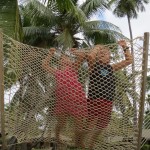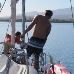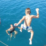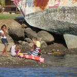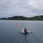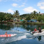 o.k., wayasewa liegt hinter uns und es war ein träumchen. nach nur kurzer zeit waren wir gern gesehene gäste im dorf und die kinder hatten spaß ohnen ende. ob sie hundehütten aus schrott gebaut haben oder in der schule mit den kids songs auf fijianisch gesungen haben, sie waren mal wieder echt gut drauf die beiden. äh, wie fast immer möchte ich meinen. klar hätten wir noch länger dort bleiben können, aber irgendwie lockt doch immer das ungesehene und es ist auch recht wahrscheinlich das wir dort auf dem rückweg wieder vorbei kommen, schön wär es jedenfalls. der hauptgrund, weshalb wir weiter wollten war auch die tatsache, dass unser kühlschrank nichts wirklich mehr hergab und unsere französischen freunde von der sy plume uns eine mail aus einem resort in der nähe geschrieben haben und meinten man könne über den dortigen chefkoch lebensmittel von der hauptinsel bestellen. rosige aussichten, die uns direkt in die fänge der eher unschönen tourismusindustrie getrieben haben, wie wir später feststellen musste. chefkoch war untergetaucht und der manager des octopus resorts begrüßte uns mit den worten “wenn ihr schon hier seid, könnt ihr auch bleiben”. gemüse bestellen is nicht meinte er, aber wir könnten mit ihrem boot mitfahren und eventuell auch den einkauf wieder mit zurück nehmen, falls noch platz wäre. allerdings würde sich das erst kurz vor der rückfahrt von der hauptinsel klären, also wenn ich den ganzen kram schon gekauft hätte. da hab ich wohl recht sparsam ausgesehen und gefragt ob er das ernst meinen würde, was er dann lächelnd mit einem kurzen jääääs untermauerte. spinner hab ich gedacht, bin über den berg ins nächste dorf gelatscht und dort ein speedboot lift für den nächsten tag arrangiert. für einen viertel des preises, den das beknackte resort aufgerufen hat, nochmal spinner. yo, am nächsten morgen gings dann los und ich würde die fahrt nach laotoka mit einem kirmis plastikbullen rodeoritt auf halbprofi stufe vergleichen wollen. einziger unterschied wäre, das die lancha von dawan und seiner frau anna ungefedert daher kommt und nicht auf zuruf reagiert, wenn man die schnauze gestrichen voll hat. in luv von der insel frischte es auf ambitionierte 20 knoten auf und die see möchte ich mal als ruppig beschreiben. natürlich mussten wir auf dem hinweg gegenan, kreuzen mit einer 40 ps jolle…. viel mehr geht nicht. das teil hat den weitaus größeren teil der ca 50! Km im fliegen zurückgelegt. in die wellentäler ist die lanscha nicht selten so hart rein gefallen, dass ich mein eigenes abheben nur duch brutalstes festkrallen an der schiffskante verhindern konnte, aber eben nur manchmal. als wir nach ca. 2,5 stunden in laotoka ankamen war ich am ende. schnell zum markt und zum supermarkt wo ich mal eben für 2kg butter, 2kg käse, 3kg milchpulver und n bißchen kleinkram 150 euro gelassen habe. aber das wirklich dicke ende kam, als der jollen käptn mich in die fiji geflogenheiten einweihte und mir klar machte, dass die männliche besatzung auf der rückfahrt für gewöhnlich alkohol zu sich nimmt. na gut dachte ich, die wellen von hinten auf der rückfahrt würden sich schon mit mäßigem alkoholkonsum in einklang bringen lassen, dachte ich. als dawan dann aber bein liquer shop recht üppig einen burbon rum mix in flaschen kaufte, konnte ich ja nur mit fiji gold bier kontern um sie auf der rückfahrt VOR dem burbon ins spiel zu bringen. der plan ging auf, aber leider ohne den jollen käptn. das bier war schnell alle und es wurden immer 2 flaschen auf gemacht ohne rücksicht auf jegliche verzögerungstaktik. der rest ist schnell erzählt, dem jollen käptn seine auge wurden immer kleiner, was er mit der brutalen gischt in zusammenhang brachte. gut, kann man zumindest zum teil gelten lassen. meine augen wurden immer kleiner, weil ich nach all dem hart angezählt war. erst nach 2 stunden schlaf auf der supermolli war ich wieder eingermassen hergestellt, aber dann gingen die schmerzen los….. ich könnte jetzt jammern, vermeide es aber, da die kapitänin sonst noch häufiger so gehässige worte wie waschlappen oder simmulant in den mund nehmen wird. keiner leidet mehr als ich, sagt sie immer. könnte sein, aber ich gerate auch immer in diese sachen rein…… heute war ich dann wieder fit und wir haben das resort richtung darawaqa verlassen. da liegt jetzt der anker und morgen früh um 8 werden wir versuchen mit mantarays zu tauchen. die kommen hier bei hochwasser in beachtlicher zahl zum fressen und machen sich wohl recht wenig aus mittelgroßen, neugierigen säugetieren wie uns. hoffentlich werden sie nicht wieder so enthemmt von speedboten verfolt wie die buckelwale in tonga, dann vergeht uns allen der spaß ganz schnell wieder. wir streben mal eine dezente annäherung an und gucken ob uns die tiere irgendwas erzählen wollen. alle sind schon sehr gespannt……