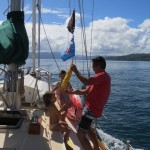 Heute mittag sind wir in Savu Savu angekommen (28 Grad Wassertemperatur)! Die SY Perla Alba war ein paar Stunden vor uns da, mit der SY Sikkim sind wir gleichzeitig eingelaufen. Was für eine Freude! Nach genau 11 Tagen, 1227 sm und 100(!) Motorstunden flippen wir und das mitten im heißen Paradies! Savu Savu ist eine kleine Stadt, die uns an die bunte Karibik erinnert. Karibik mit polinesischem und indischen Einfluß. WOW. Super freundliche Menschen, das Einklarieren war selten so entspannend und angenehm und in der Stadt hört man zu meiner Freude endlich wieder laute Musik aus den Läden erklingen. Alle sind glücklich und das merkte man auch beim ersten Treffen der Segler aus Neuseeland in der Bar der Copra Shed Marina, vor der wir an einer Mooring hängen. Viele kannten sich nur durch VHF Funk, AIS Signale oder SSB Radio vom South Pacific Net. Alle erzählen aufgeregt, wie ihr Törn war. Zusammen mit der SY Donella haben wir 4 Boote in etwa die gleiche Taktik angewandt. Alle sind mehr oder weniger gut durch das Tief geschippert. Bei der SY Sikkim hat der Autopilot den Dienst in der Hochphase quittiert (zu dritt und ohne Kinder, war das aber nicht so schlimm). Ein befreundetes Boot der Perla hat sich gegen die Pause auf dem Pazifik entschieden und ist mitten rein ins Vergnügen. Sie konnten die riesen Wellen und die 40 Knoten Wind nicht schräg nehmen, hatten auch einen Autopilotausfall und sind nach 4 Tagen Sturm bis Vanuatu abgelaufen. Sie kämpfen immer noch mit 30 Knoten Wind, aber werden morgen ankommen. 27 Boote sind ins Minerva Reef gesegelt. Es wurde wohl etwas eng, aber so weit ich weiß ist nichts schlimmes passiert. Diese Boote werden wohl ab morgen eintrudeln. Eine 52 Fuß Yacht ist heute (nach 13 Tagen auf See) in Fiji angekommen und ein anderes Boot ist heute erst in Minerva angekommen. So unterschiedlich sind die Erfahrungen, obwohl alle zum selben Zeitpunkt losgesegelt sind! Für uns heißt es jetzt erstmal abwarten und auf das passende Wetterfenster warten, um zur Lau Group zu segeln, die wieder entgegen der Tradewinds im Südosten liegen. Bis letztes Jahr war es noch sehr schwierig die Genehmigung dafür zu erhalten, da diese Inselgruppe ihren Lebensstil unbeeinflusst beibehalten wollten. Tourismus galt nicht als akzeptabler Grund für die Austellung der Permission. Zu unserem Glück ist es seit diesem Jahr bedeutend einfacher in den Gewässern von Fiji zu cruisen. Dennoch muss man den Chief des jeweiligen Atolls und der jeweiligen Bucht um Gastfreundschaft bitten. Bei Ankunft muss man sevu sevu (=Geschenk) machen: soll heißen, man legt dem Chief mit den Worten: Noqu sevusevu gor ein halbes Kilo Kava (bitte googeln) vor die Füße, wenn dieser es annimmt, darf man ankern und die Bucht genießen. Wenn man Glück hat darf man das Kava mit ihnen trinken (meistens nur die Männer) oder wird zu einem Fest oder in ein Zuhause eingeladen. Sobald man Land betritt, darf man keine Sonnenbrille oder Hut tragen, Frauen keine Hosen und sowieso alle Schultern und Knie bedeckt. Taschen und Kameras dürfen nicht geschultert werden, sondern gehören in die Hand. Beim Abschied sagt man: Noqu yaqona (=kava) ni tatau. Dahinter steckt natürlich ein alter Brauch, der auch heute noch praktiziert wird. Es ist keine Bezahlung für den Ankerplatz sondern eher die Frage nach Gastfreundschaft. Dafür bringt man ein Geschenk mit. Wenn der Chief dich willkommen heißt, ist er auch gleichzeitig verantwortlich für dich. Und mit den Abschiedsworten entlässt man ihn aus seiner Verantwortung. Find ich irgendwie ganz symphatisch und natürlich bin ich ganz gespannt, ob sich die Regeln heutzutage gelockert haben oder nicht. Auf jeden Fall braucht man noch ein halbes Kilo pro Chief und die 10 Kilo besorgt uns der Wassertaxifahrer der Marina (bekommt man aber auch im Supermarkt). Hihi.. ich werde berichten.. Es ist spät, die anderen schlafen schon und ich bin auch hundemüde nach dem aufregenden Törn.