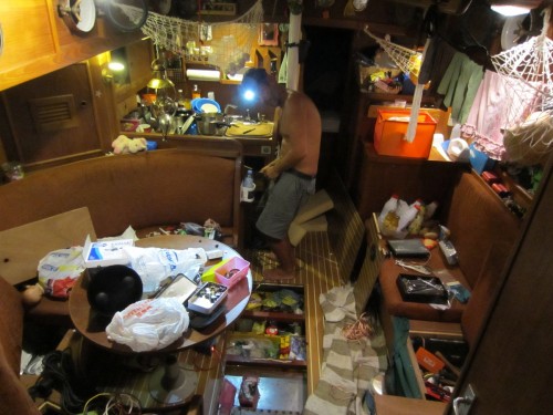 Seit dem erwarten wir mal so gar nix mehr und waren denn auch freudig überrascht, als wir hier im Laden standen. Ein neues Dingi gibts trotzdem nicht, ist leider grad ausverkauft (unsere liebe Komtesse verliert nämlich immer mehr Luft und ist mit ihrem Plaste-Luftboden eh nicht so wirklich geeignet für die Korallen an den Sandstränden.). Dafür gabs jede Menge anderen Kram, damit wir Molli mal wieder so richtig schön auseinander nehmen konnten. Yeah.